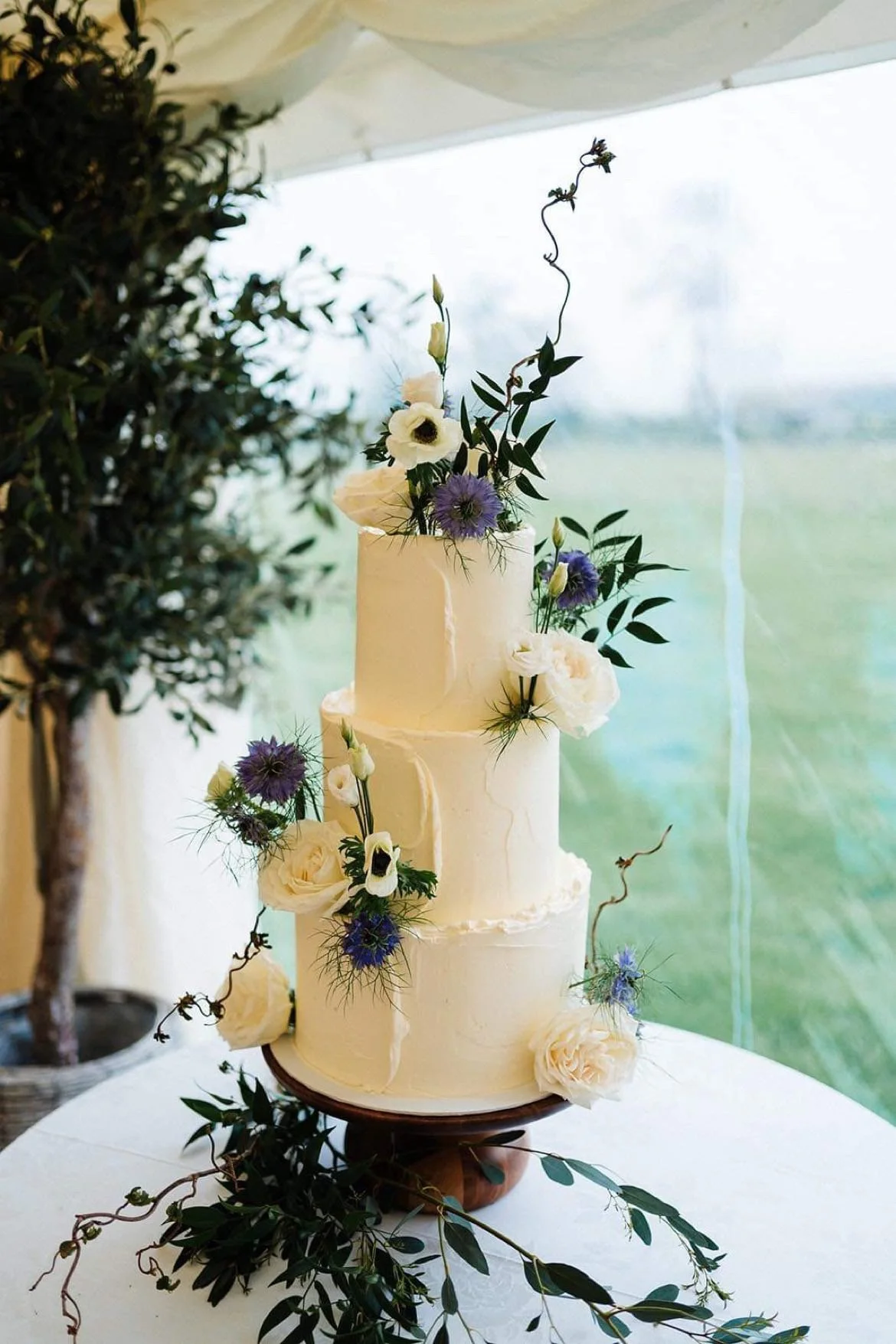 Individually & artistically decorated, never with a fixed design. I choose botanical arrangements, natural flowing swishes, ruffles of buttercream & fresh seasonal fruits. These cakes are customisable & can fit to a colour guideline & additional decorations can included to make it unique to you.